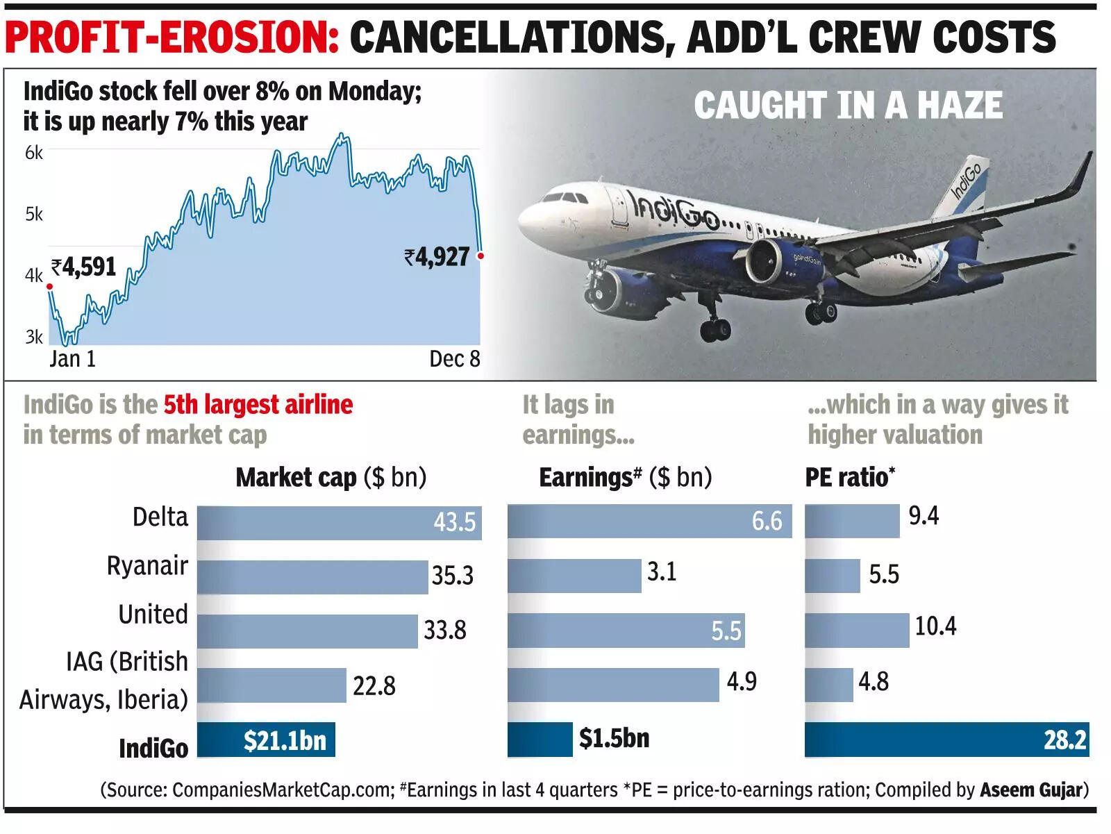 Stock Stall: IndiGo dives 17%, $4 billion mcap wiped off this month